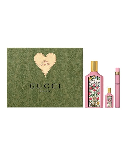 - مع طقم غوتشي فلورا جورجيس غاردينيا اكتشفي جرعة الحب والمتعة اللذيذة مع التكوين الزهري الساحر من أزهار الكمثرى الطازجة.