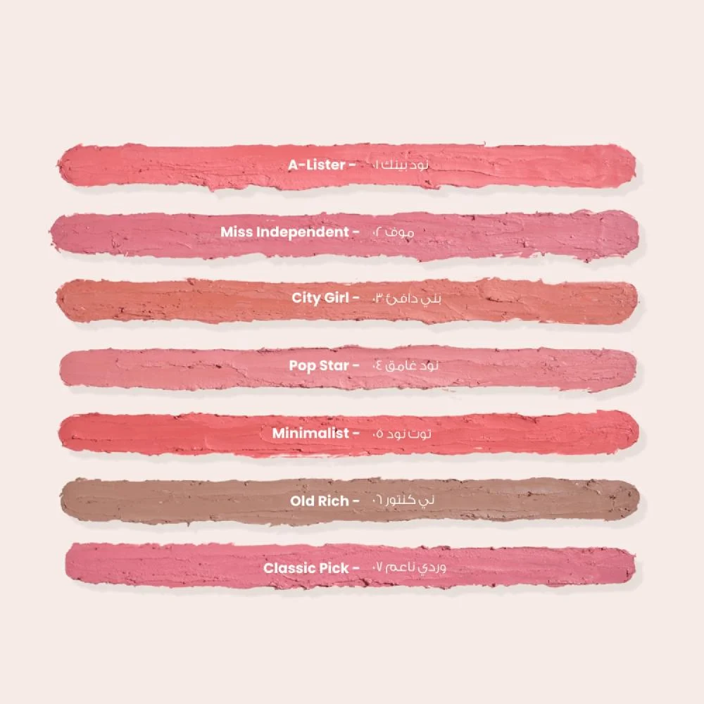 يتميز بتركيبة كريمية تنساب بسلاسة على الشفاه، مما يمنحك لمسة نهائية مطفية وتحديداً مثالياً.