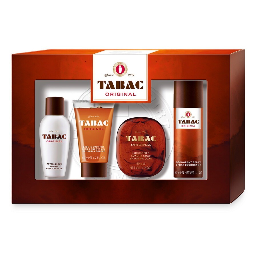 تتكون مجموعة هدايا تابك أوريجينال كواترو (Tabac Original Quattro Set) من 4 قطع أساسية للعناية بالرجل، وتتميز برائحتها الكلاسيكية الخشبية العطرية. تشمل المجموعة غالباً (أو دي كولون، بخاخ مزيل للعرق، لوشن بعد الحلاقة، وجل استحمام) قولدن سنت.