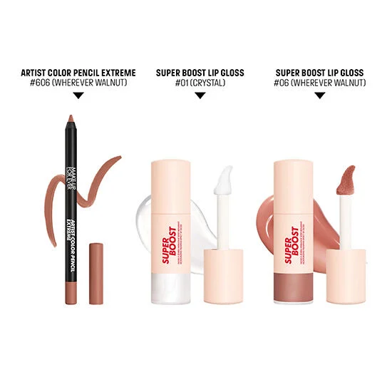 - ملمع الشفاه Super Lustrous (أو Super Boost): يمنح ترطيباً ولمعاناً، مع شعور بالبرودة والتكبير بفضل حمض الهيالورونيك (متوفر بلمسات لؤلؤية ولامعة).